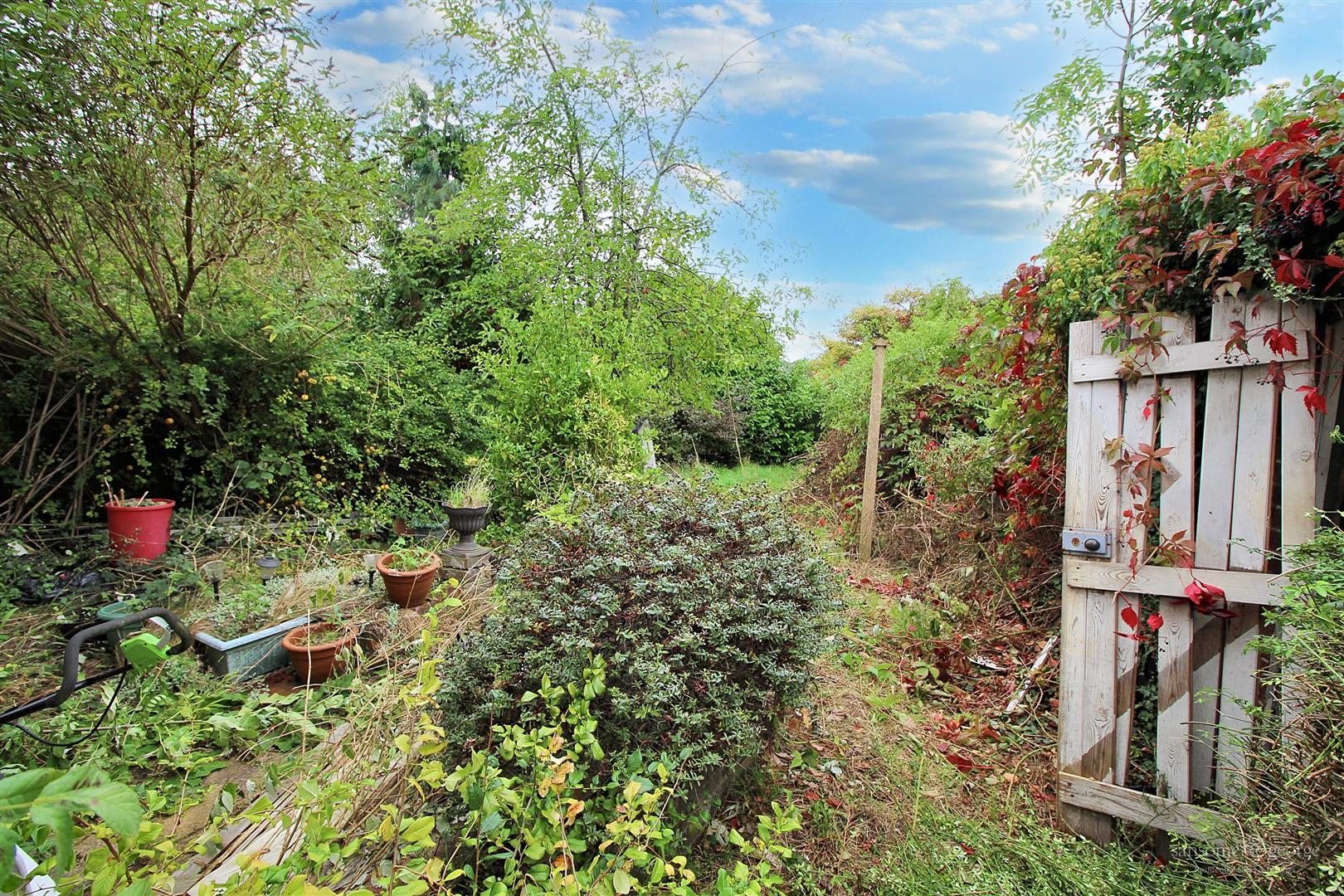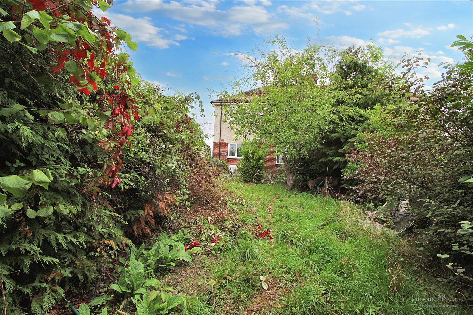 The rear garden is particularly substantial, with mature planting and areas now partly overgrown, while the side garden presents a clear opportunity for expansion. The property also enjoys a generous frontage, with ample space to create driveway parking.
